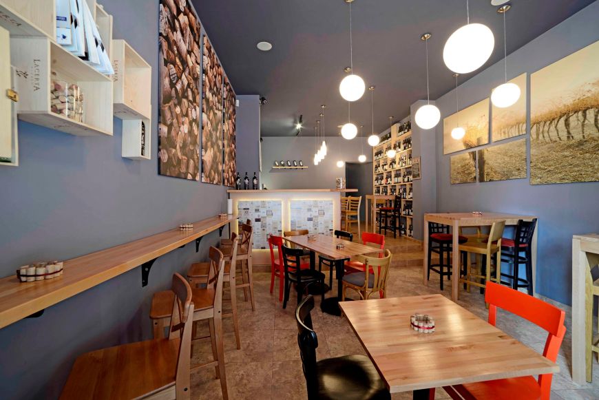 Spațiul cuprinde trei zone distincte – magazinul de vinuri, zona destinată degustărilor și zona de bar și bucătărie. Dacă nu sunteți sigur ce fel de vin căutați, barmanii vă stau la dispoziție cu sugestii, sau puteți încerca și vin la pahar. Unde? Pe Maria Rosseti 49 A.