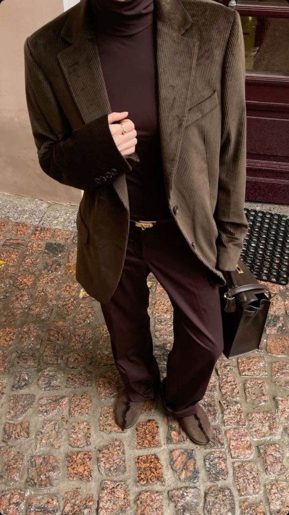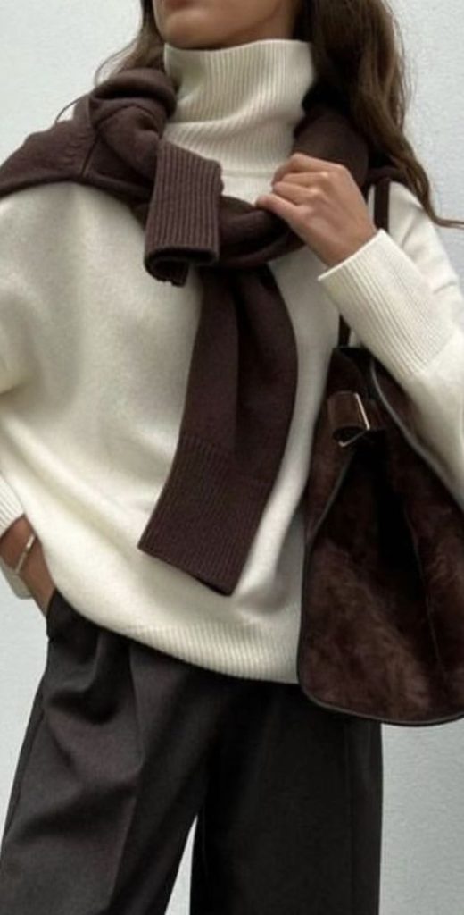 Trebuie să recunosc că dintre cele trei aceasta este preferata mea dintotdeauna. Mi se pare extraordinar de rafinată. În plus, maro este o culoare atemporală care evocă o senzație de căldură și confort. De la tonuri de ciocolată închisă la nuanțe de caramel și taupe, paleta de maro are o consistență specială și oferă numeroase opțiuni pentru orice stil. Maro se potrivește de minune cu tonurile de bej, crem, alb sau chiar negru, aducând o notă de echilibru și pământesc ținutelor.