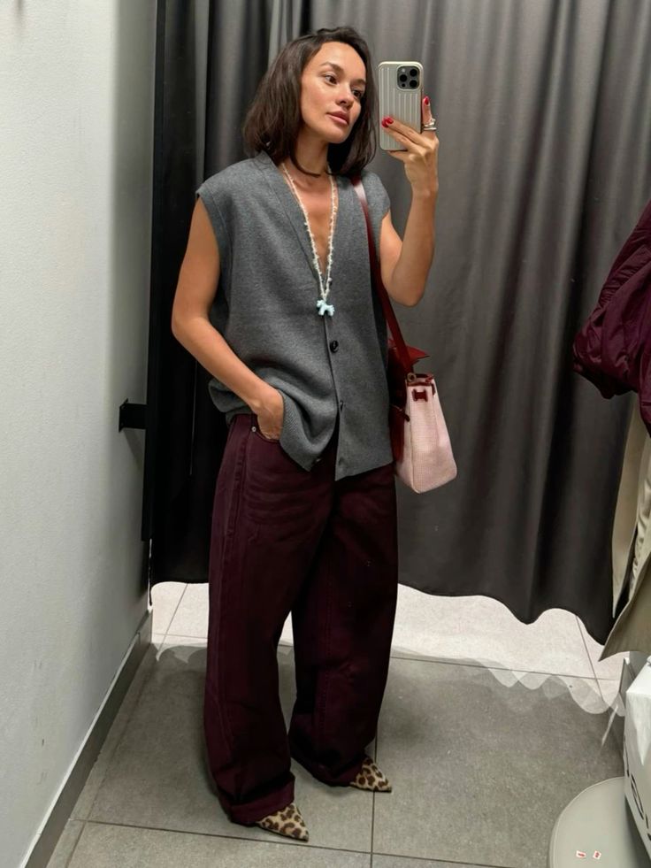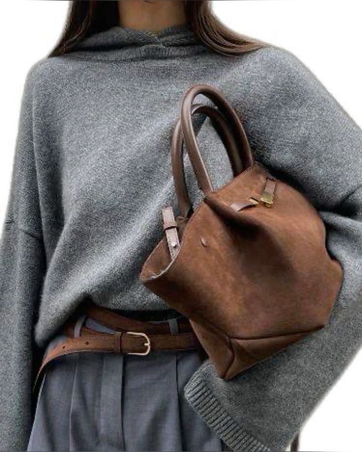3. Pulovere și fuste. Pentru un look cozy de toamnă, optează pentru un pulover maro pe care să îl porți cu o fustă plisată și cizme înalte. Adaugă o geantă crossbody în tonuri de burgundy pentru a crea un contrast interesant.