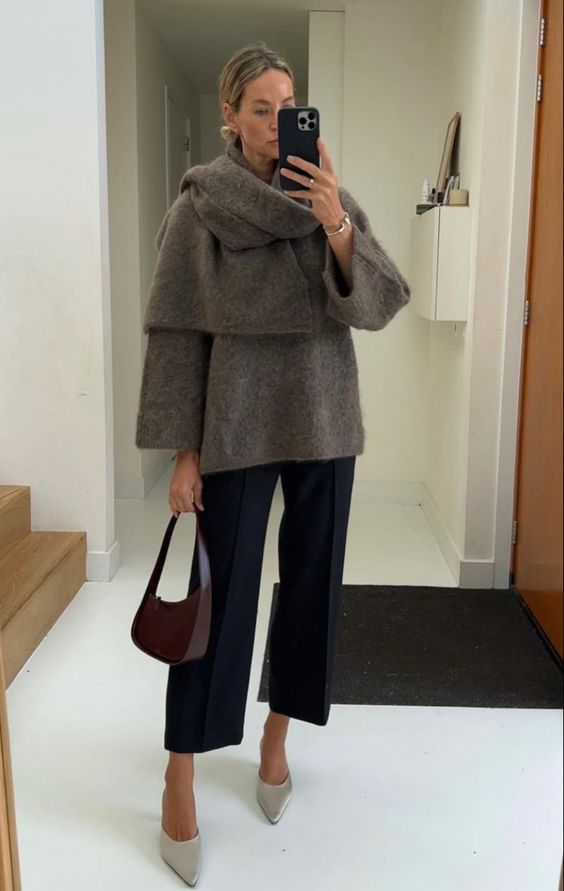 1. Cardigan sau pulover. Poți opta pentru o piesă esențială precum un cardigan, perfect pentru layering.  Poartă-l peste o cămașă albă sau un top în tonuri neutre, sau aruncă-l lejer pe umeri pentru un look relaxat dar șic. Sau… direct pe piele mai ales dacă este din cașmir fin.