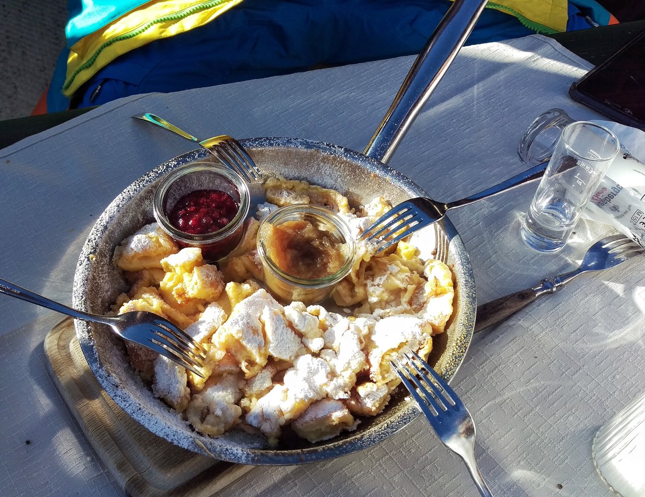 Iar dupa aceasta relaxare, o cina din care nu lipsesc o supa crema fina si o salata cu seminte este tot ceea ce iti mai trebuie pentru a fi din nou in forma a doua zi. Austriecii chiar s-au pus la punct cu gastronomia. Am mancat foarte bine in aceasta excursie, asa ca, daca ajungeti in perioada urmatoare prin imprejurimi, va recomand sa incercati cateva specialitati tipic tiroleze, in varianta originala sau modernizate. De exemplu: Tiroler Gröstl, Kasspatzln si OBLIGATORIU desertul Kaiserschmarren. Sunt absolut LECKER – adica delicioase!! 🙂
