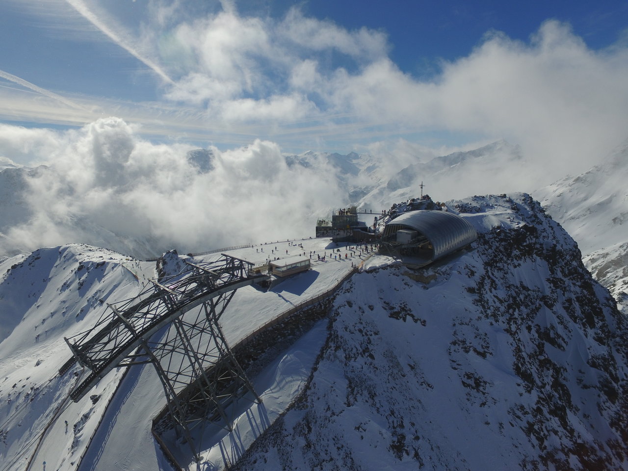Pe unul dintre aceste trei varfuri, respectiv la Bergstation Gaislachkogl, se afla restaurantul gourmet Ice Q, adica fix locatia hibernala in care s-a filmat Spectre, ultimul film James Bond. Iar aceasta este singura locatie aleasa si platita pentru filmarile la James Bond. Este ca si cand ar fi castigat la 6 din 49. O sansa unica. Sigur, a lipsit Daniel Craig din peisaj, dar locul chiar este spactaculos si vi-l recomand din tot sufletul.
