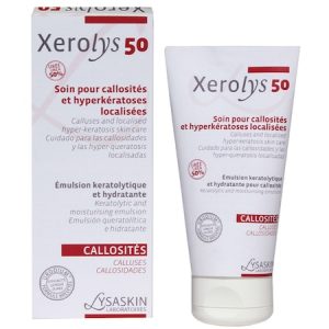 Xerolys 50, reduce calusurile sau hiperkeratozele localizate. Calusurile si bataturile sunt zone de piele ingrosata, intarita, moarta. Ele se formeaza pentru a proteja pielea si alte structuri de sub piele de presiune, frictiune sau traumatism. Pot avea o culoare galbuie sau spre gri, pot fi mai putin sensibile la atingere decat pielea inconjuratoare si la contact pot avea un aspect rugos (neregulat)