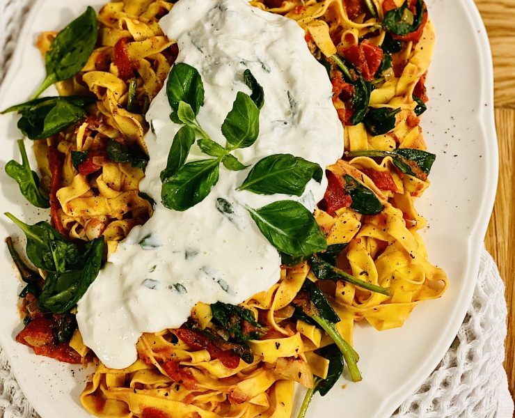 Tagliatelle cu stracciatella în sos roz