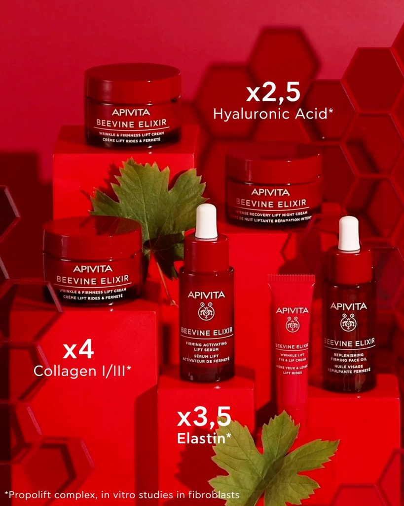 Susținut de o nouă tehnologie brevetată, PROPOLIFT Complex, foarte concentrat în polifenoli din propolis și din viță de vie, fortificat cu colagen vegetal (alternativă pe bază de plante la renumitul ingredient activ anti-îmbătrânire), oferă pielii cea mai eficientă apărare împotriva îmbătrânirii. Se absoarbe complet și instantaneu. Are o eficacitate prelungită până la 8 ore: