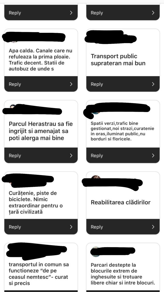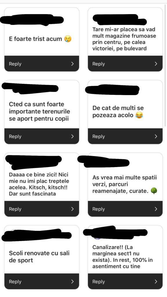 Dar înainte de a vă oferi lista cu ce își doresc bucureștenii de la primarii aleși, listă care conține răspunsurile de pe Ig, voi spune eu, într-o ordine aletorie, ce mi-aș dori să se schimbe prin orașul în care m-am născut eu și toată familia mea, în orașul în care trăiesc și vreau să trăiesc în continuare. Dar în care vreau o calitate a vieții demnă de anul 2020 și de poziția noastră de oraș european.