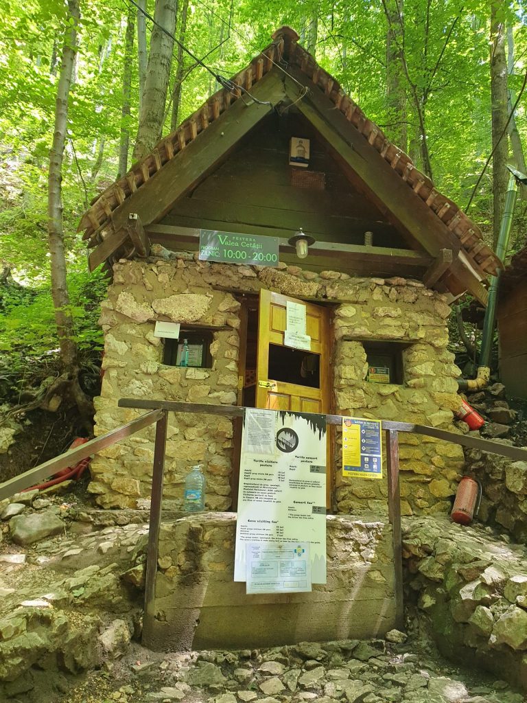 Peștera se află pe partea stângă a drumului, unde se vede o mică căsuță de bilete și o tiroliană nefuncționabilă din cauza pandemiei din păcate. Copiii și-ar fi dorit tare mult să facă o plimbare pe sus cu tiroliana, dar asta este, cu altă ocazie.