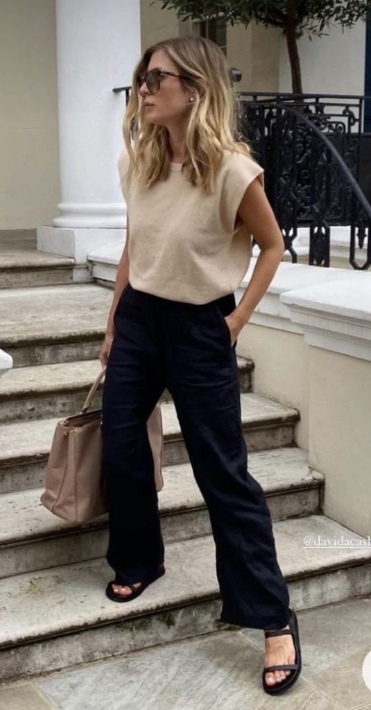Ador această combinație, daaaar să știți că și pantaloni bej – top negru arată foarte foarte bine … după cum se vede.