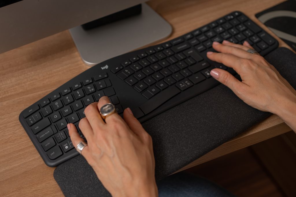 Deoarece stau multe ore în fața calculatorului încerc să mă protejez pe cât posibil și să țin cont de sfaturile pe care le-am oferit mai sus. De aceea, m-am bucurat enorm să aflu despre tastatura ergonomică curbată, marca Logitech. Brandul încurajează utilizatorii să adopte un stil de viață sănătos, cu varii beneficii pe termen lung. Tastatura Logitech K860 plasează degetele, mâinile, încheieturile și brațele într-o postură mai naturală. Imposibil să nu observi lipsa de tensiune în momentul în care mâinile vor ateriza pe tastatură. Forma înclinată reduce tensiunea musculară pe încheieturi și antebrațe, menținând mâinile și umerii relaxați. De fapt, s-a dovedit că ERGO K86O wireless a redus activitatea musculară cu 21% în partea superioară a mușchiului trapez, comparativ cu o tastatură tradițională.