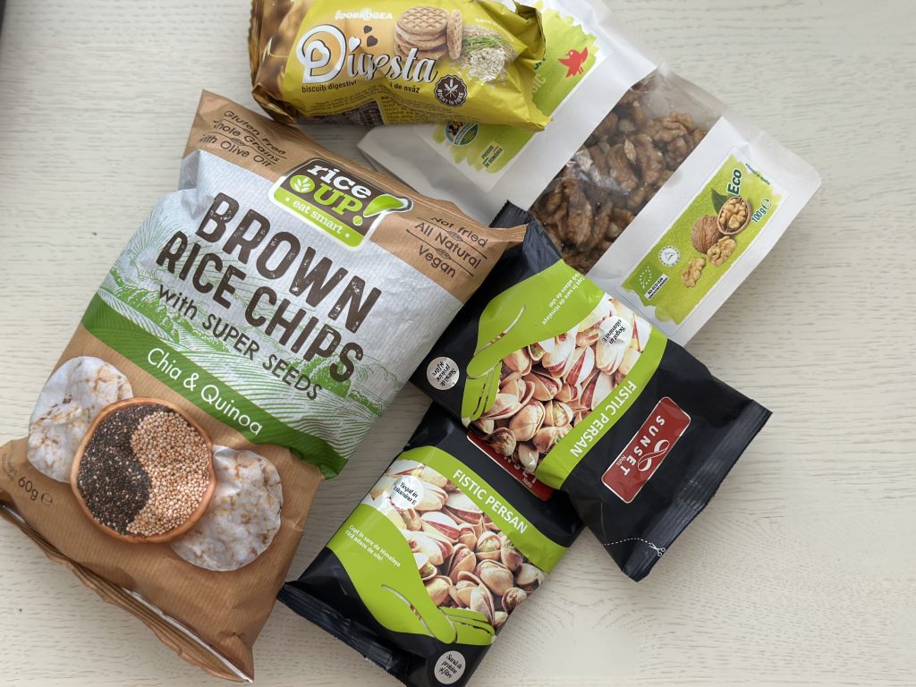 Alegerile conștiente sunt cele care mă salvează în astfel de momente, chiar și când cumpăr din benzinărie, mai ales că acum au tot apărut mici selecții de produse bio (nu că acestea ar fi sănătate curată). Și mai există opțiuni simple. Foarte important este să citești eticheta. Cu cât mai puține ingrediente conține, cu atât mai ok produsul. Uite, cele din imagine sunt cât de cât decente. 🙂