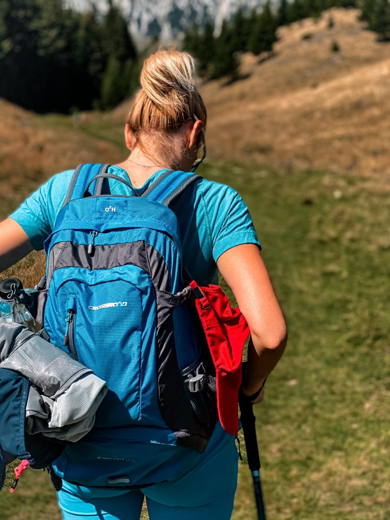 45L women’s hiking backpack monarch purpleIdeea e că pe munte, surpriză, nu prea poți face cumpărături. Așa că trebuie să ai la tine diverse lucruri, printre care și mâncare și apă. Batoane proteice și energizante, sandwich-uri, fructe. Să fie cât mai hrănitoare. Pentru o zi de traseu min. 2l de apă sunt necesari.