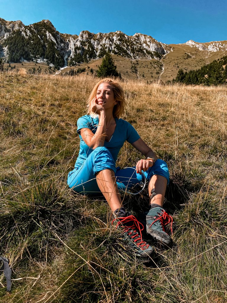 Când urc pe munte mă simt liberă și lipsită de griji. Aerul curat și liniștea îmi limpezesc mintea și sufletul. Atentă la fiecare pas pe care îl fac, muntele mă obligă să trăiesc în prezent. Sunt născută și crescută în București și mult timp am crezut că nu pot fi fericită altundeva decât în oraș, dar atracția mea constantă și inexplicabilă pentru munte a căpătat sens când am simțit cele descrise anterior. Am înțeles că acela este locul în care cu adevărat reușesc să mă relaxez. Și locul în care practic un fel de meditație activă. Este terapie pură și mișcare sănătoasă (oare e un pleonasm?).