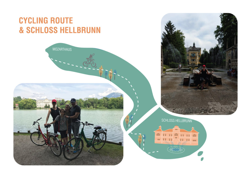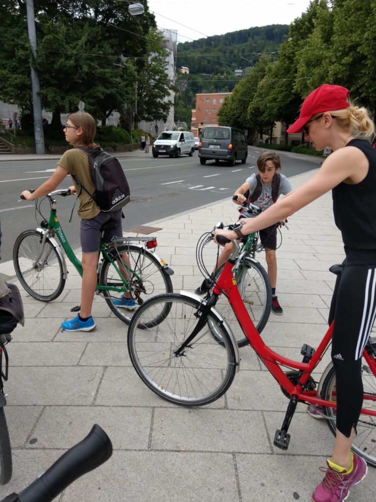 În a treia zi am zis că e cazul să facem și mai multă mișcare și mi-am scos soțul la o sesiune de jogging în Mirabell Garten, ca să păstrăm buna tradiție a alergărilor noastre din fiecare călătorie. I-am luat apoi și pe băieți, am închiriat biciclete de la Avelo în Mozartplatz, am dat o tură prin centrul vechi, în jurul Palatului Leopoldskron și am pornit spre un loc despre care auzisem de mai multă vreme, dar pe care încă nu apucasem să îl văd în excursiile de până acum la Salzburg (din motive obiective este de preferat să fie vizitat când este cald afară).