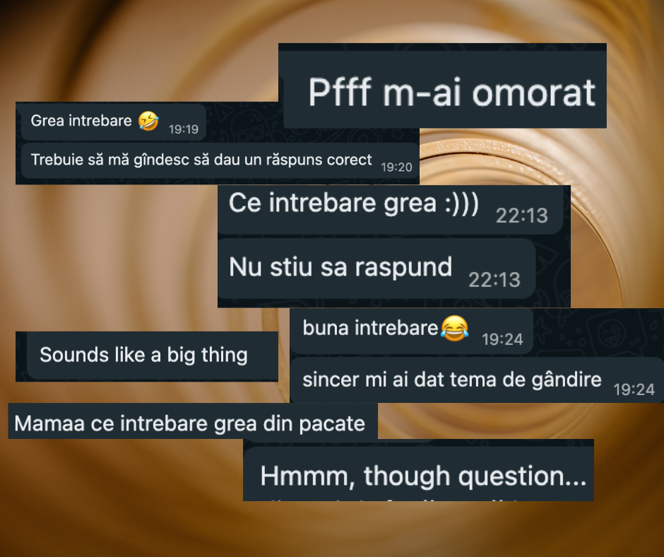Răspunsurile mi-au făcut ziua mai bună. Deși majoritatea și-au luat timp de gândire, au găsit în ele lucruri unice, pe care și eu le apreciez foarte mult. Curioasă de răspunsuri? Hai să le luăm pe rând.
