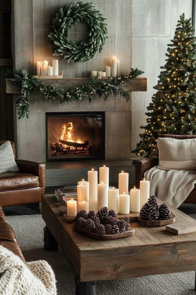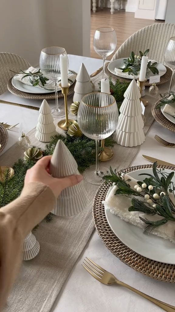 Amenajează masa în ton cu cromatica pe care ai ales-o și înrestul casei și recomand să o personalizezi cu un décor poziționat pe centrul mesei. Alege ceva care oferă eleganță fără să ocupe prea mult spațiu. De exemplu, poate fi aranjament floral minimalist, cu ramuri de brad, conuri de pin și lumânări.Te sfătuiesc să nu fie prea înalt, ca cei de la masa să se poată vedea. Așează lumânări de diferite dimensiuni pe masă sau folosește instalații luminoase discrete. Dacă masa este amplasată sub un candelabru, decorează-l cu crenguțe de brad sau globuri mici pentru un efect festiv.