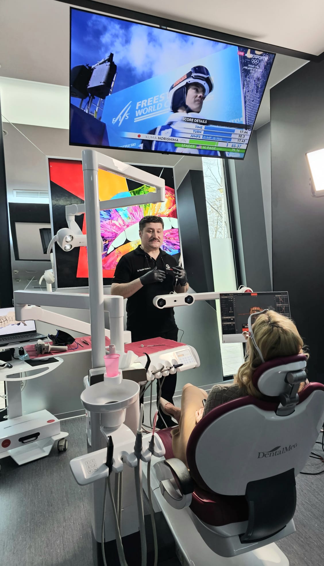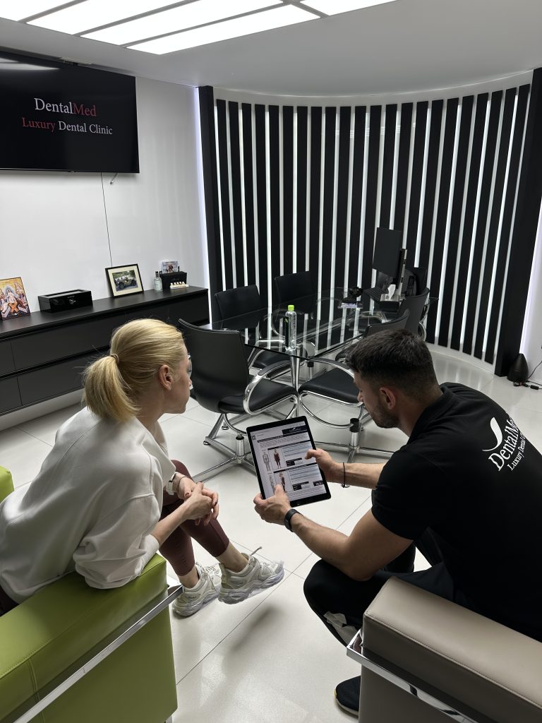 Prima a fost analiza MODJAW 4D – o tehnologie de ultimă generație care mi-a arătat, în timp real, cât de corectă este ocluzia dinților mei. Mi s-a părut fascinant să văd în mișcare ceea ce, altfel, nici nu conștientizăm: cum se întâlnesc și cum funcționează dinții în timpul vorbirii sau masticației. Am povestit deja despre această experiență într-un reel foarte bine documentat, pentru că mi s-a părut relevant să arăt cât de avansată este medicina dentară azi.