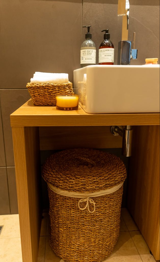 - coșuri mici de rafie pentru prosoapele de oaspeți