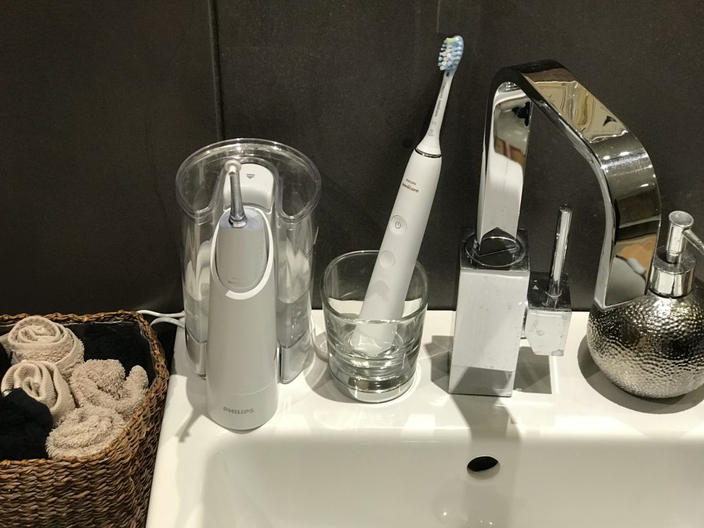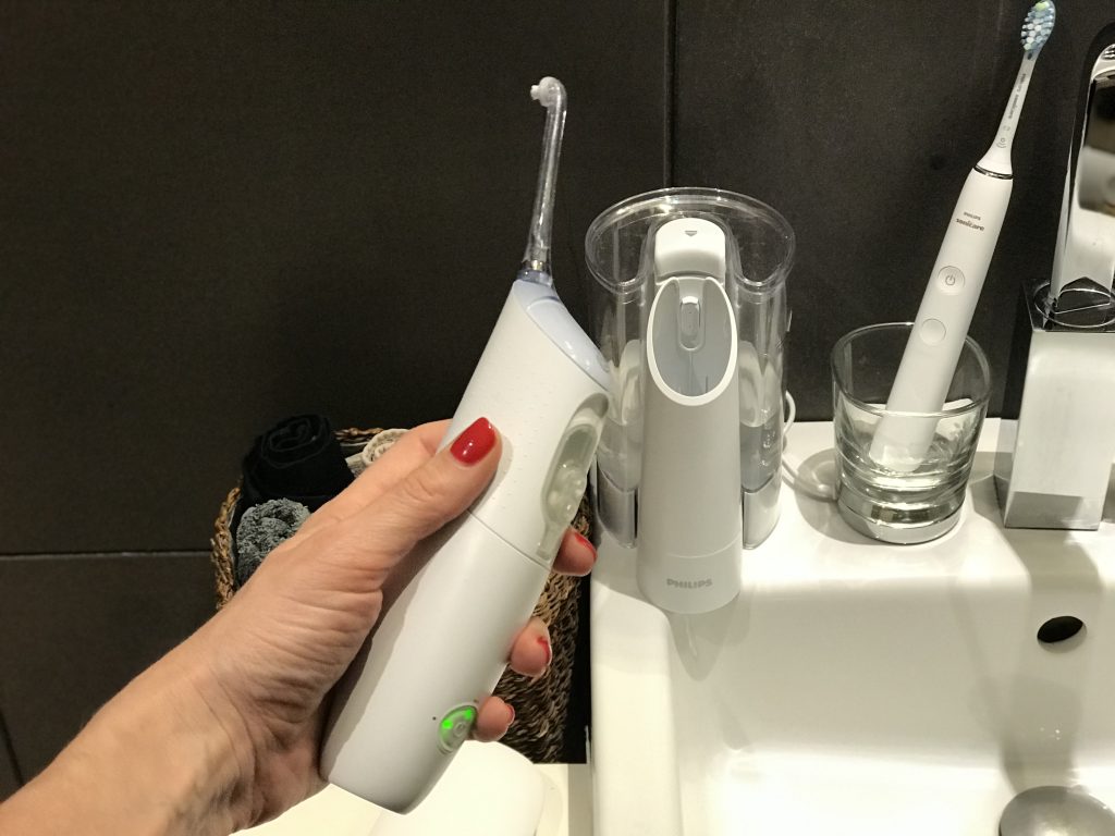 1. Dușul bucal AirFloss este dispozitivul care mi-a fost cel mai des recomandat de alți cetățeni purtători de aparat ortodontic. 🙂 ”Va fi viața!” – cam asta am auzit de zeci de ori. Și au avut dreptate. Este perfect pentru curățarea spațiilor interdentare. Eu nu am probleme cu sănătatea gingiilor, deci nu pot să vă confirm din experiență proprie, dar medicul meu ortodont mi-a spus că folosit în mod constant, dușul bucal, pe lângă faptul că este modalitatea ideala de a curăța dinții și spațiile interdentare, îmbunătățește semnificativ starea de sănătate a gingiilor.