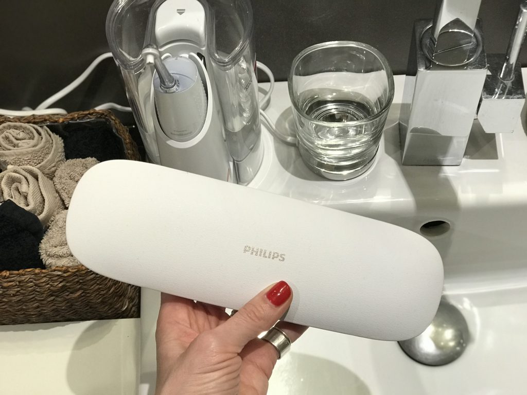 Alte detalii ale periuței care pe mine m-au cucerit sunt tocul special de transport (adică încape foarte elegant într-o poșetă de zi 🙂 ) precum și paharul de încărcare, nu doar practic ci și estetic.