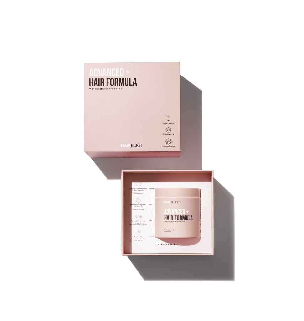 Formula Advanced+ pentru păr este un supliment zilnic care conține două amestecuri înregistrate, TrichoBurst™ și Folishield™, ambele concepute pentru a aborda cauzele subțierii și pierderii părului. Această formulă se concentrează pe remedierea deficiențelor nutriționale, reducerea inflamațiilor și combaterea stresului oxidativ.