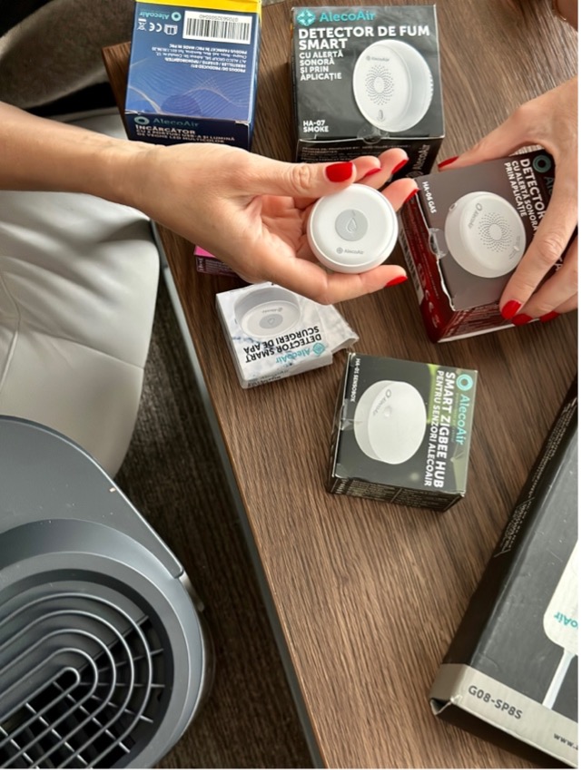 Apoi, am luat și un detector de metan. Câștigătorul premiului “Reddot Design Awards”, extrem de eficient din punct de vedere al funcționalității și dotat cu tehnologie SMART de ultimă generație, senzorul HA-06 GAS Aleco Air îmbină toate caracteristicile tehnice și fiabilitatea într-un design ergonomic și foarte plăcut.