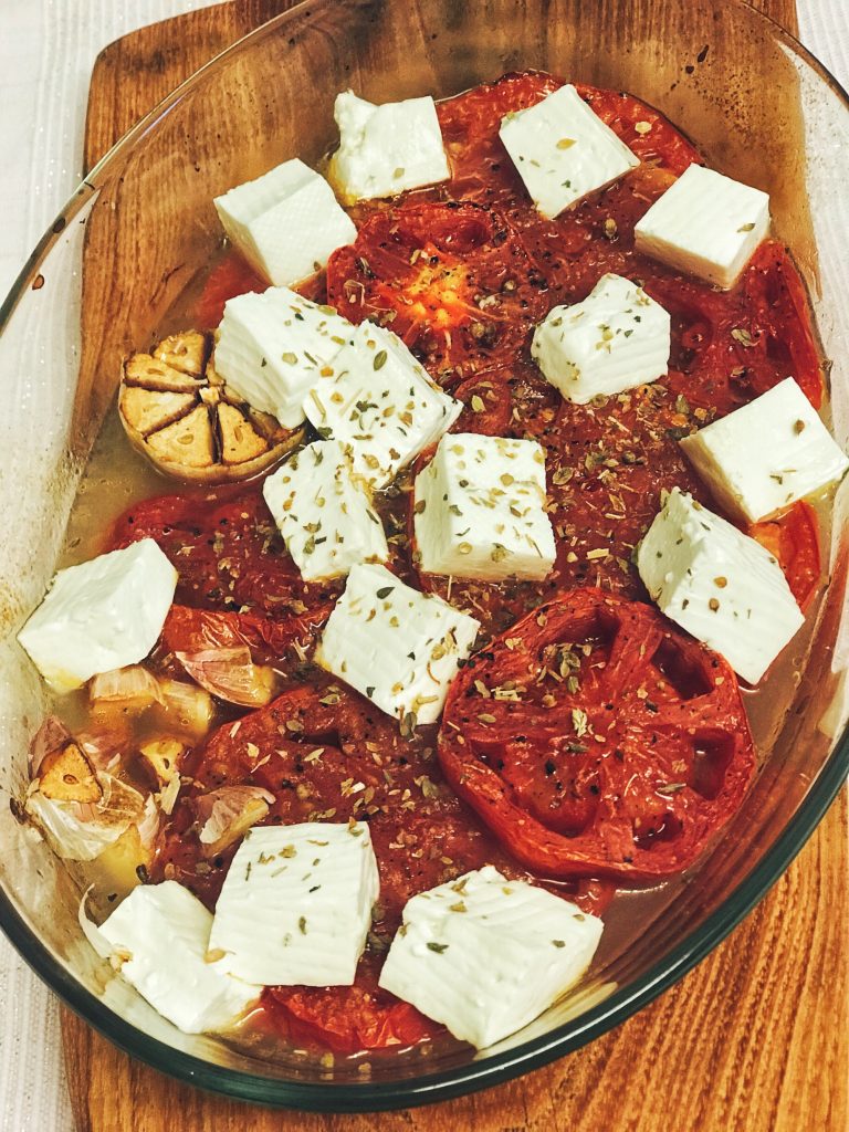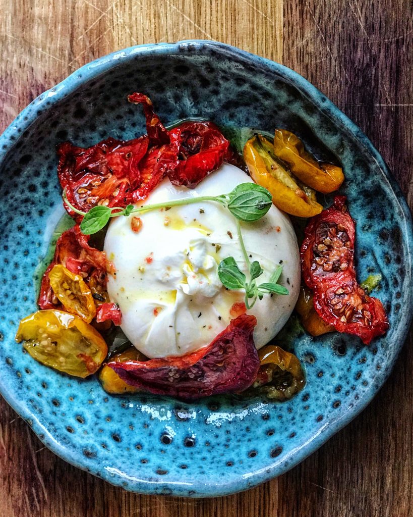 Roșii la cuptor cu ulei de măsline, ierburi uscate și usturoi, peste care am aruncat cuburi de brânză feta.Salată mixtă, piure din cartofi cu lapte, unt și ulei de trufe, morcovi trași în unt și caramelizați cu miere, cotlet de porc în tigaie.SIMPLU de tot: salată de roșii, burrata cu ulei și trufe, păine integrală prăjită. Mănânci până leșini!Salată cu năut, roșii și fenicul coapte, pătrunjel și vinegretă cu aceto balsamico, chimen și, miere, după rețeta Dianei Henry.Burrata cu roșii deshidratate de mine, ierburi proaspete și ulei de măsline.Porumb fiert, salată de cartofi și cotlet de porc cu mirodenii.Brânză feta cu roșii, ceapă , ardei iute, măsline, ulei de măsline și busuioc proaspăt, băgate la cuptor pe funcția grill.