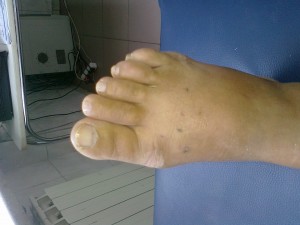 - Tratament conservator – cel mai important tratament este igiena incaltamintei. Trebuie evitata cu orice chip purtarea indelungata a pantofilor constrictivi, cu toc inalt si subtiri la varf! Incaltamintea sport, sandalele, pantofii cu varf larg si talpa ortopedica sunt obligatorii mai ales pentru persoanele care merg mult sau stau mult in picioare. Mi se argumenteaza deseori la consultatie, mai ales de catre pacientele tinere ca li se impune un anumit dress code. Le raspund ca nimeni nu le poate impune ceva care le afecteaza sanatatea – de exemplu daca li s-ar impune sa ia zilnic amfetamine pentru cresterea performantelor ar face-o?