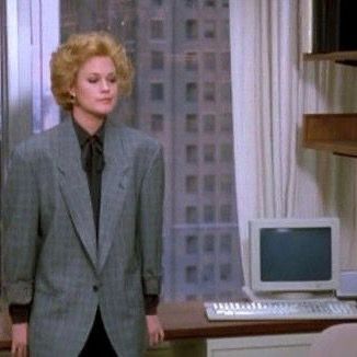 Melanie Griffith o interpretează pe Tess McGill, o secretară ambițioasă din New York, al cărei stil reflectă tranziția de la lumea muncitoare la mediul corporatist al anilor ’80. Costumele cu umeri largi, coafurile voluminoase și elementele power dressing sunt simboluri ale aspirației ei de a se impune într-o lume dominată de bărbați. Look-urile sale reprezintă spiritul femeilor din acea perioadă, care doreau să-și croiască drumul în carieră fără a-și pierde feminitatea. Foarte la modă și acum dacă arunci o privire la ultimele prezentări Saint Laurent.