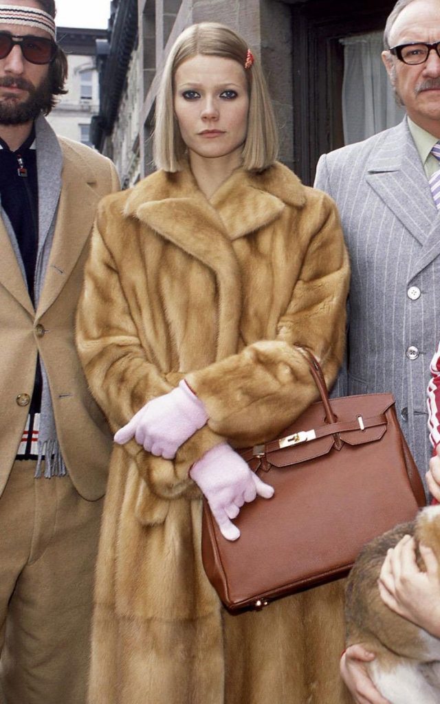 Scena mea preferată din „The Royal Tenenbaums” de Wes Anderson, care a fost lansat acum 20 de ani, este prima întâlnire cu Margot Tenenbaum, interpretată de Gwyneth Paltrow. Ea coboară dintr-un autobuz Green Line pentru a-l întâlni pe fratele ei Richie (Luke Wilson), purtând o haină lungă de vizon și o geantă maro Hermès Birkin. Ochii ei sunt puternic conturați cu creion negru, iar tunsoarea bob este accentuată cu o agrafă de păr roșu. Este un ansamblu plin de farmec, retro, care cu siguranță nu se potrivește locației (ai purtat vreodată un astfel de look în transportul public?), dar este unul pe care Margot îl poartă pe tot parcursul filmului. Ținuta devine la fel de importantă pentru personajul ei, precum apatia ei necruțătoare.
