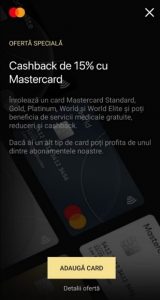 După ce te-ai înregistrat, aplicația îți amintește de promoția cu Mastercard și poți beneficia de ofertă încă de la prima interacțiune.