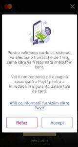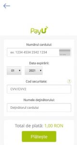 Introduci datele tale de card, care îți vor genera apoi toate serviciile la care ai acces. Pentru validarea cardului este necesar să ai 1 leu pe card pentru verificare.